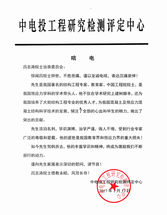 沉痛悼念吕院士——中电投工程研究检测评定中心