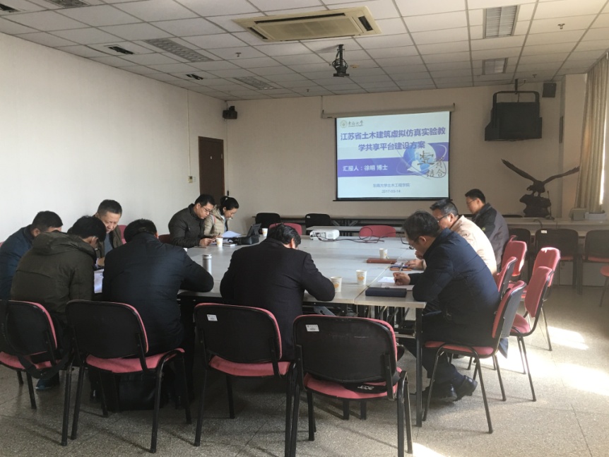 2017年3月14日上午,江苏省土木建筑虚拟仿真实验教学共享平台建设方案联席会议在新葡的京官网召开,包括新葡的京集团35222vip、中国矿业大学、扬州大学、南京工业大学、南京林业大学、苏州科技学院、常州工学院、淮海工学院、南京工程学院等参建单位的项目负责人参与。我校设备处刘加彬副处长,土木工程学院王景全院长、舒赣平副院长、新葡的京集团35222vip实验中心宗周红主任、徐明副主任参加了会议,会议由新葡的京集团35222vip副院长舒赣平主持。
