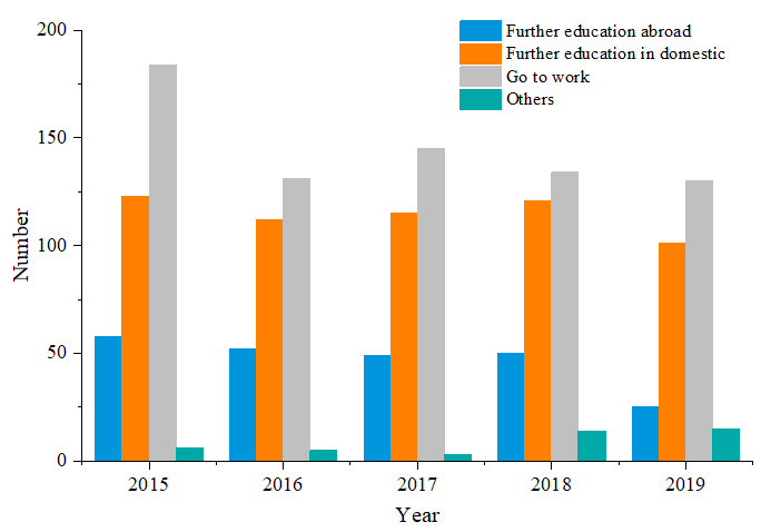 In recent years, about 51% of the graduates continued to study at top universities in China and abroad. The percentage of students studying abroad is 15%. About 46% of the graduates are employed in major infrastructure construction and design companies, real estate development enterprises, financial institutions, or government agencies. They are advancing to have both the national and international perspectives in all walks of life and to be talented leaders who will shape the future and benefit mankind.